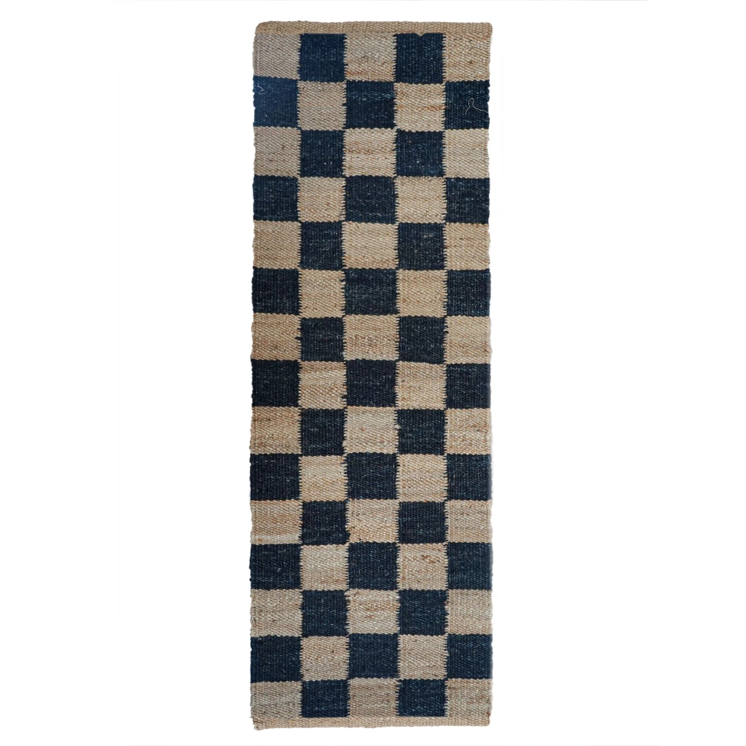 Checkered Handwoven Beige and Black Jute Hemp Runner Rug