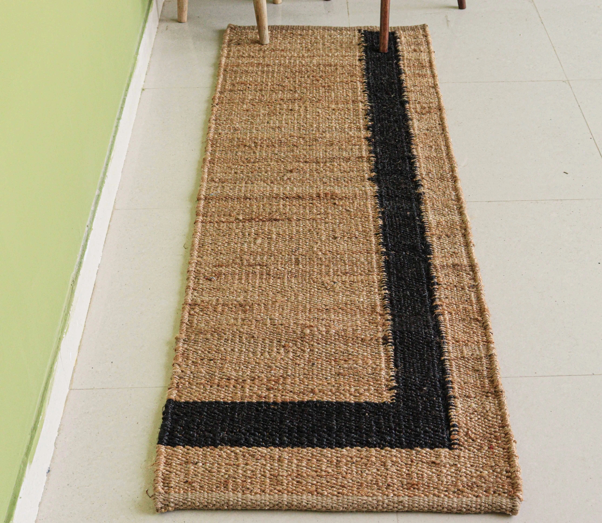Custom Size Hand Woven Natural Jute Hemp Runner Rug with Black Border For Living kitchen Decor Hemp Large Area Runner Rug