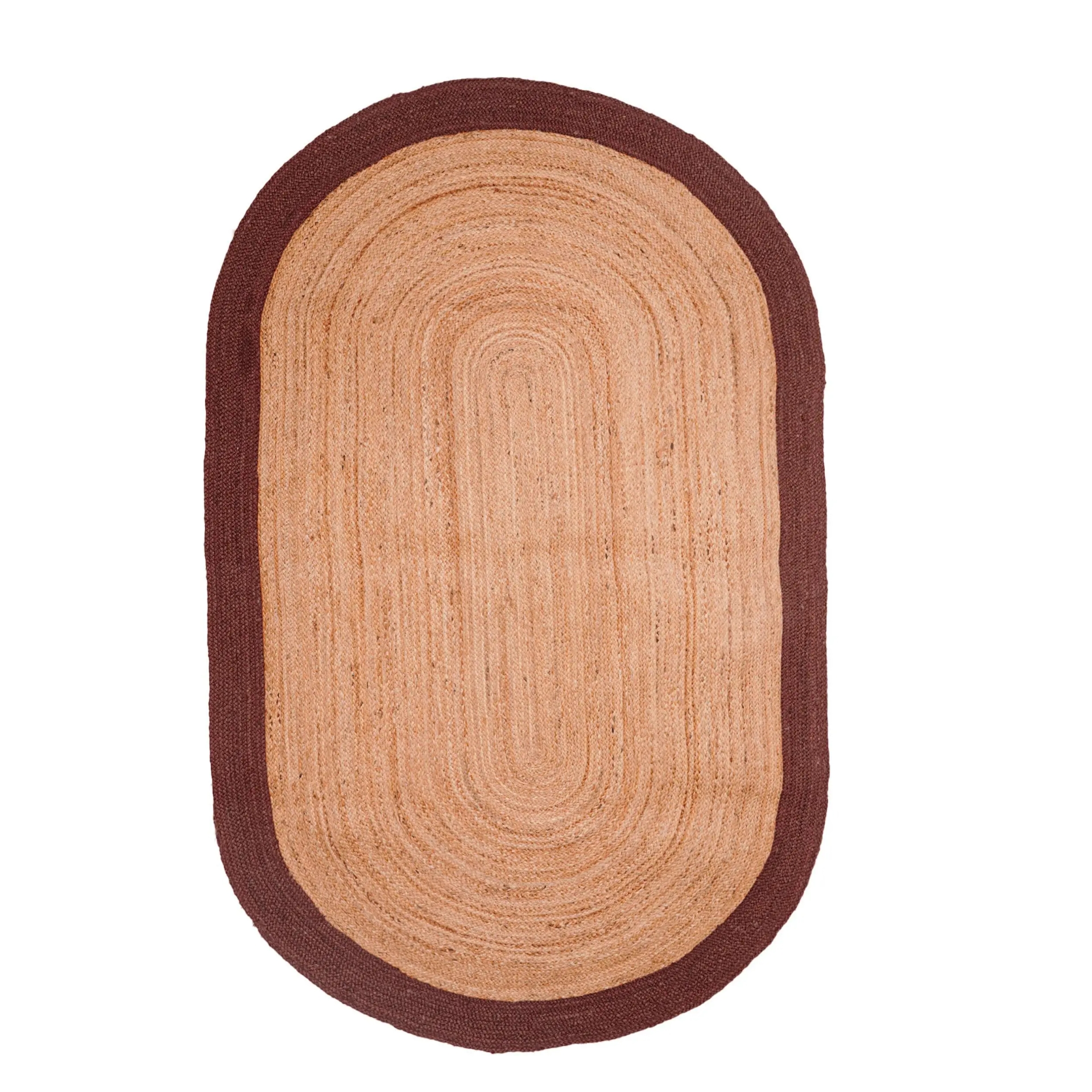 Hand Braided Oval Jute Rug Beige With Brown Color Border
