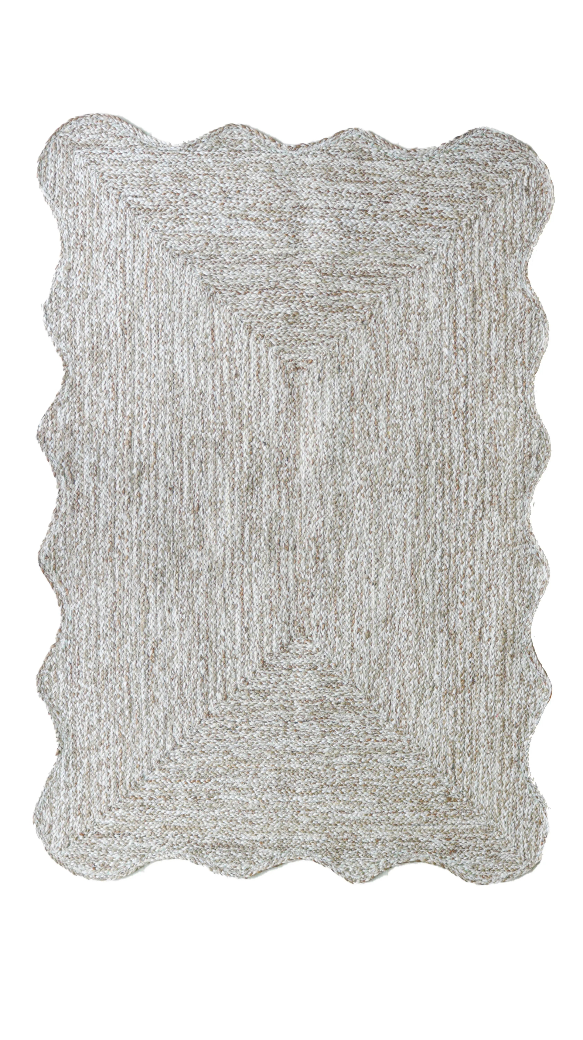 Handmade Scalloped Beige White and Grey Tie Dye Braided Rectangle Jute Rug