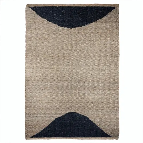 Indian Hand Loomed Natural Jute Hemp Rug with Black Design