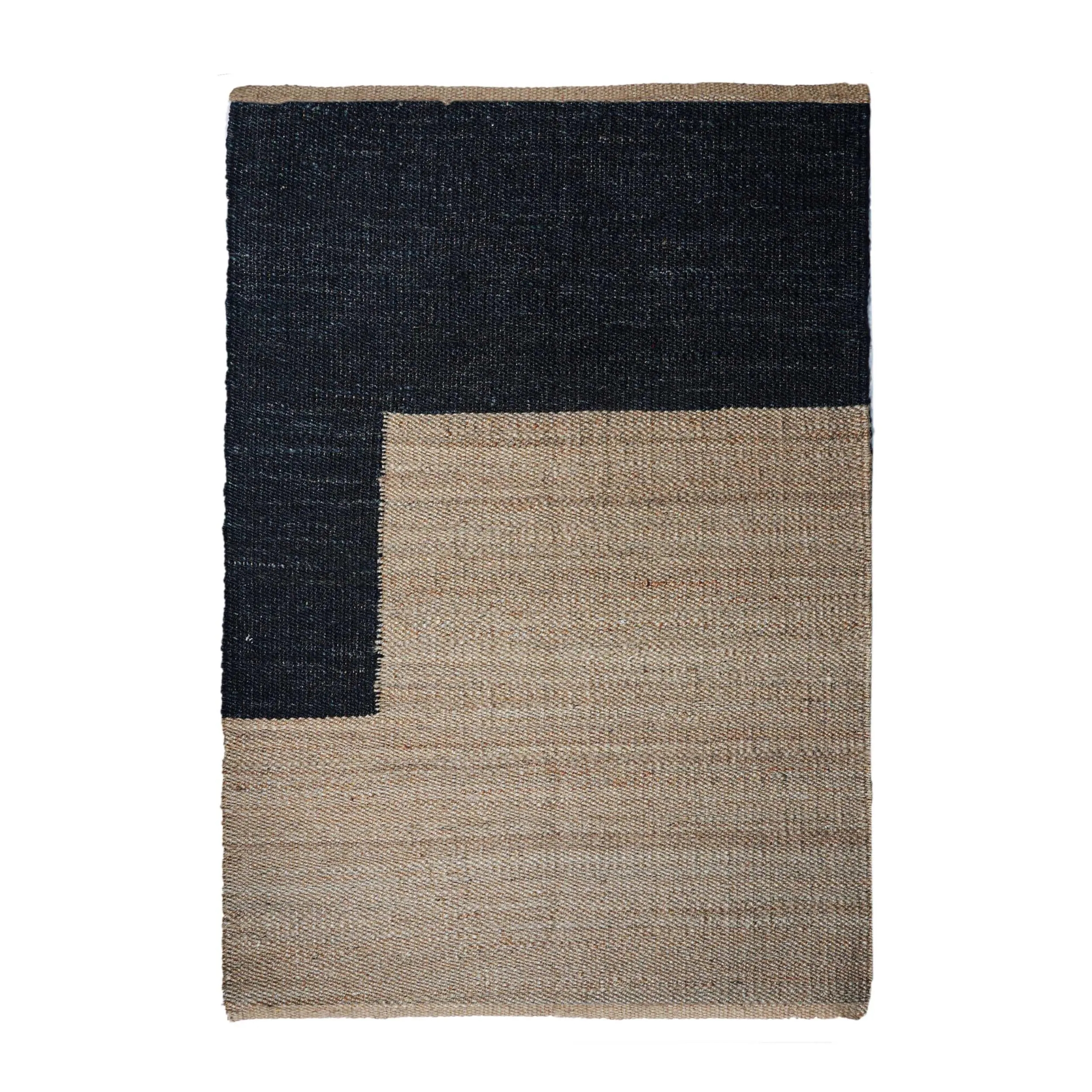 Indian Handmade Beige Rectangle Doormat Runner Hemp Jute Rug With Black Design Jute Rug Sofa Decor Large Hemp Dhurrie Rug For Living Room Decorative Hemp Jute Rug