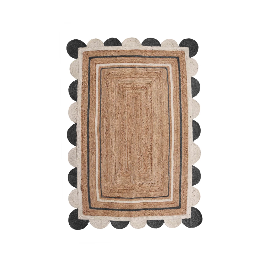 Indian Handmade Natural Jute Braided Scalloped Rug
