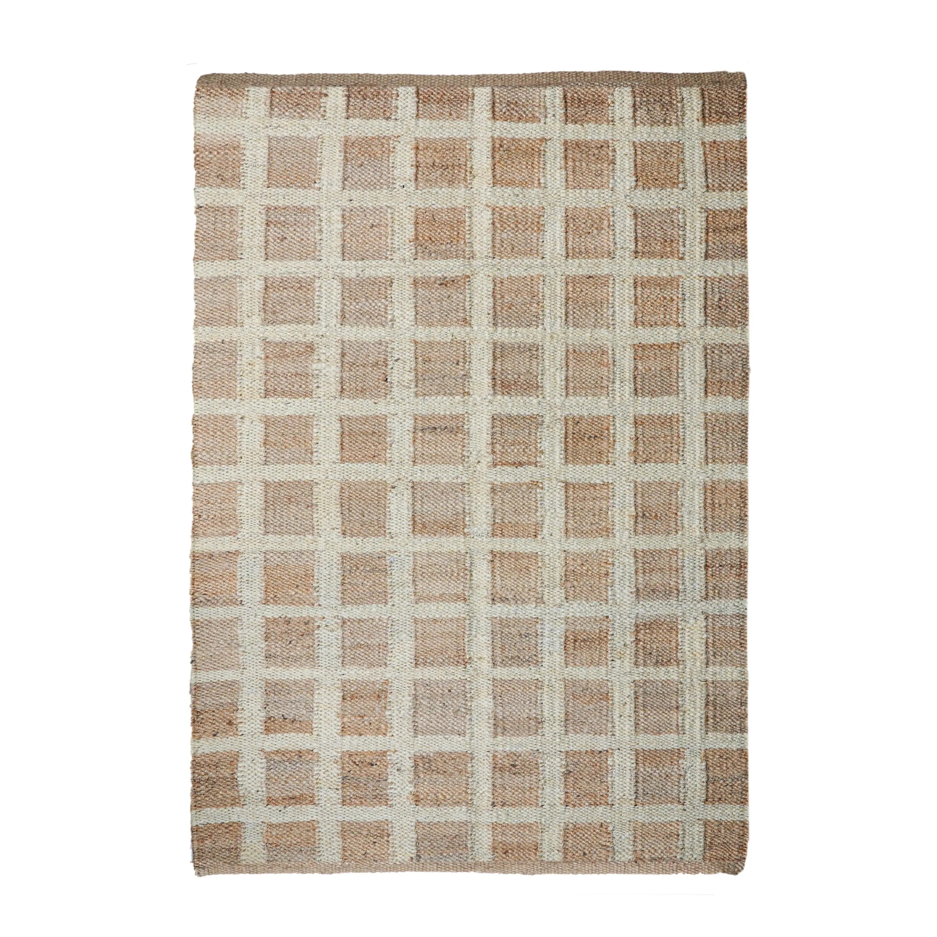 Natural Jute Hemp Rectangle Doormat Runner Rug With White Boxes Jute Hemp Runner Hemp For Stair Decor Tufted Hemp Rug Natural Fiber Hemp Home Decor Jute Area Rug