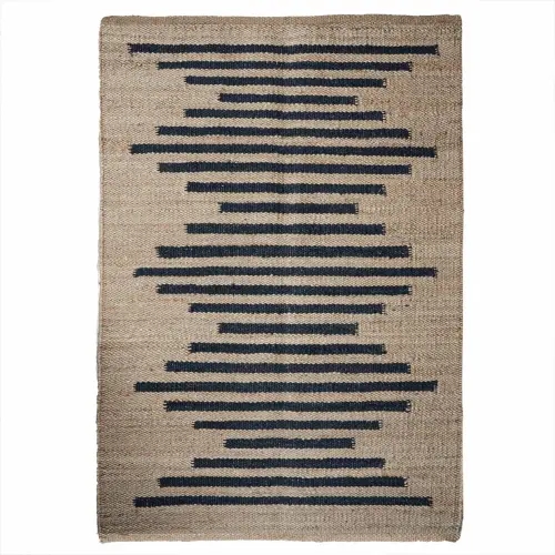 Stair Decor Hand Loomed Natural Jute Hemp Rug with Black Stripes
