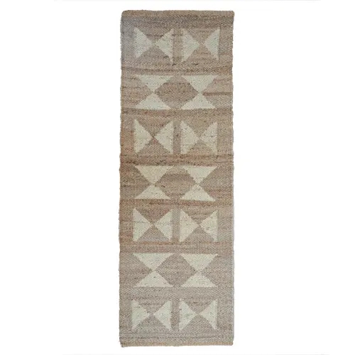 Stair Decor Handwoven Natural Jute Hemp rug with White Design